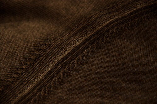コマンドセーターの特徴であるショルダーパッチを編み地に変化をつけてさりげなく表現しています。
