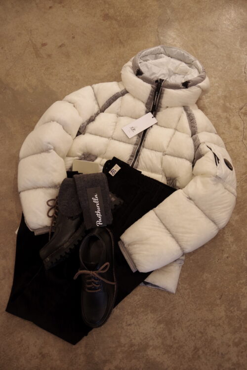 今年最後のご紹介はC.P COMPANYのD.D SHELL DOWN JACKET。定番ではありますが、今シーズンのピックアップカラーはホワイト。凍りついた雪のような雰囲気がとてもカッコいいです。ウィンターリゾート用に1着いかがでしょう。
