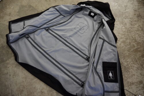 こちらはTHE METROPOLIS SERIESの新作’PERTEX BLOOM COAT’。超ライトなパーテックス素材コートですが、両サイドの裾から肩上までジッパーをオープンにすることで身幅を拡張することが可能となっています。約40cmほど大きく拡張するので、ダウンジャケットの上からも楽々羽織ることができます。風に弱いダウンジャケットの上に羽織ることにより保温力を高め、そして何よりスポーティーな雰囲気を覆い隠し、エレガント感のあるスタイリングに変貌することが可能。ややマニアックなアイテムですが、ファンクショナルウェア好きの方には堪らないアイテムでは。