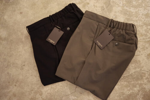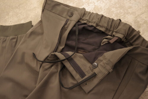 INCOTEXのリラックスフィットジョガーパンツが入荷してまいりました。ストレッチ性のあるテック素材を使用し、リブ裾で仕上げたスポーティーさが特徴。ただそこはインコテックスらしく、着用してみると端正なエレガントさも感じ取れるところが他ブランドとは一線を画しています。ウエストは背面ゴム仕様+内側のドローコードで調整可能な仕様となっています。ぜひお試しを。
