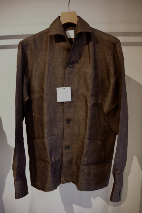夏の定番、マリア・サンタンジェロのリネンカバーオールシャツジャケット‘MARCELLO’が入荷してまいりました。今年はダークブラウンカラーをピックアップ。エレガント感のあるイタリアンクラシックスタイルのシャツジャケットに仕上がっております。一着いかがでしょう。