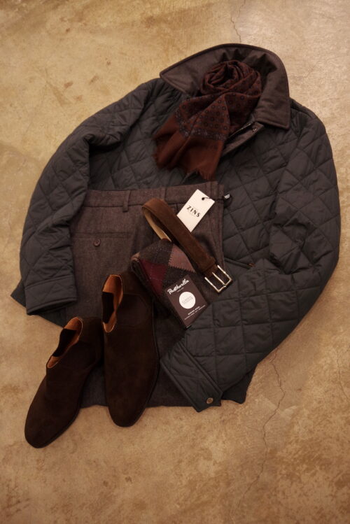 ムーレーの新作’DARDANO’が入荷しております。中綿のショート丈のキルティングブルゾンですが、これまでのウォーム感溢れるダウンジャケットとは一線を画すライトな着心地が特徴となっています。英国のカントリージャケットにはない大人の色気を感じるキルティングブルゾンいかがでしょうか。