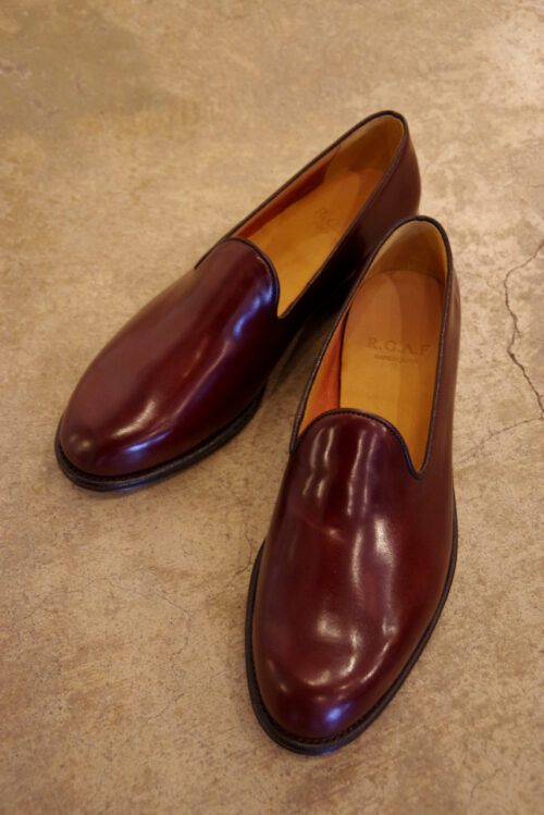 R.C.A.Fのプレーントゥローファーが入荷してまいりました。1970年代の英国ヴィンテージの木型を用い、今の感覚にアップデートしたオペラシューズです。クラシックな佇まいとアンライニング仕様による軽快な履き心地が特徴となっています。